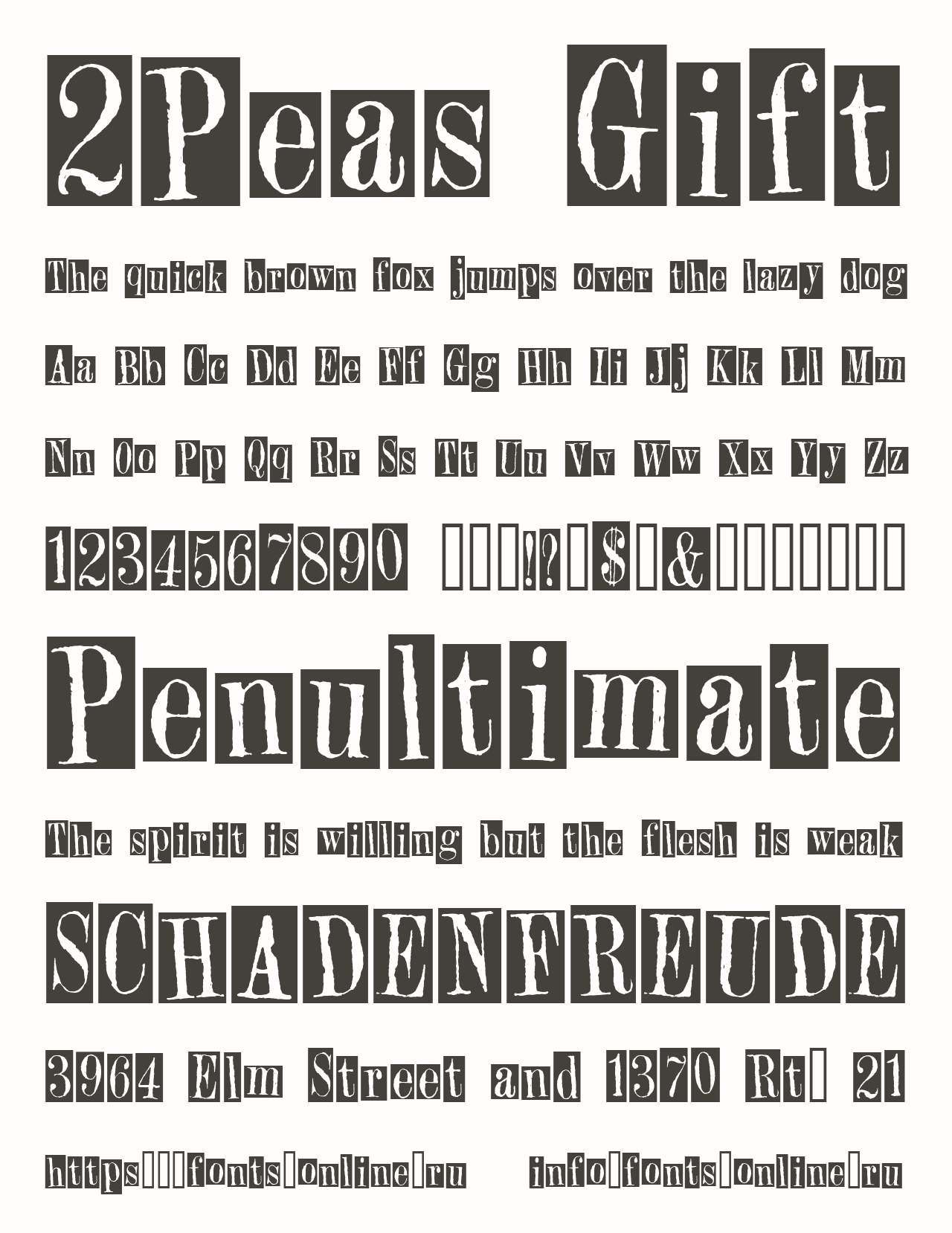 Шрифт 2Peas Gift. Гарнитура содержит 1 файл и поддерживает 12 языков. Можно использовать в коммерческой и не коммерческой деятельности.