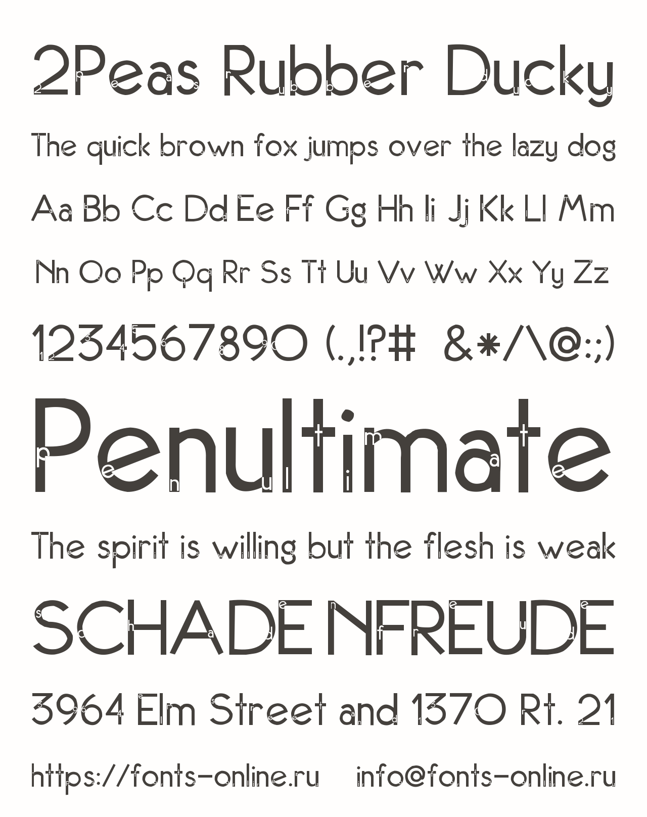 Шрифт 2Peas Rubber Ducky. Гарнитура содержит 1 файл и поддерживает 41 язык. Можно использовать в коммерческой и не коммерческой деятельности.