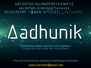 Шрифт Aadhunik Light. Гарнитура содержит 2 файла и поддерживает 12 языков. Можно использовать в не коммерческой деятельности. Разработка Aadhunik Light велась Hareesh Seela.