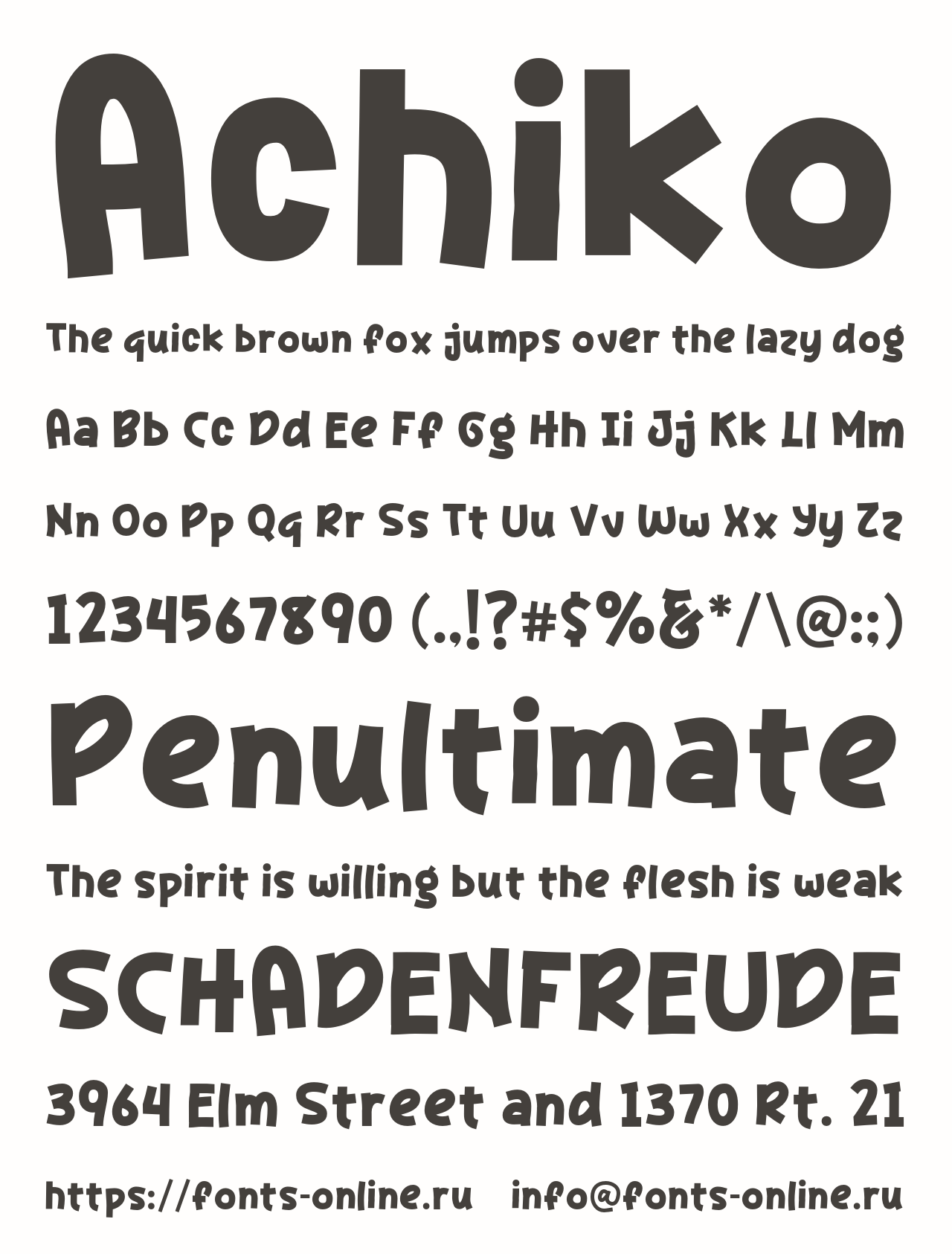 Шрифт Achiko. Гарнитура содержит 1 файл и поддерживает 41 язык. Разработка Achiko велась Jarnawi Saja.