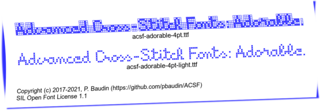 Copyright (C) 2017-2021, Patrick BAUDINA cursive cross-stitch font