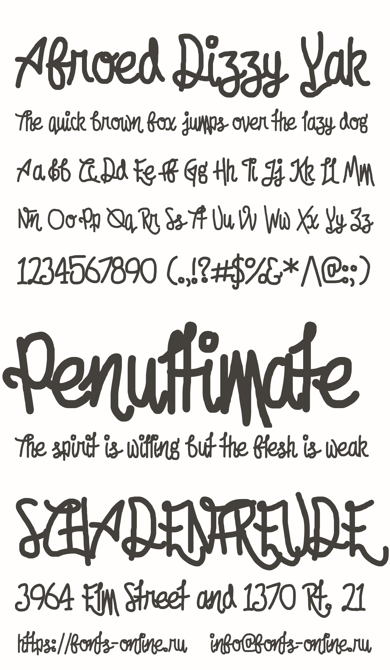 Шрифт Afroed Dizzy Yak. Гарнитура содержит 1 файл и поддерживает 12 языков. Можно использовать в не коммерческой деятельности. Разработка Afroed Dizzy Yak велась Chequered Ink.
