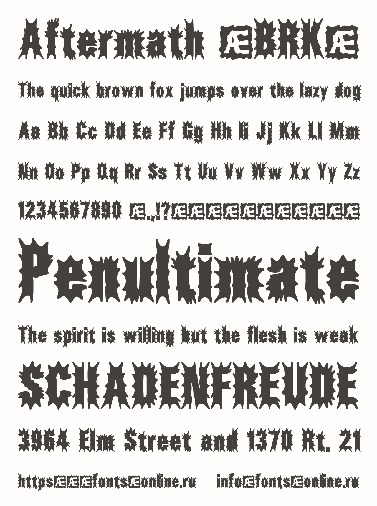 Шрифт Aftermath (BRK). Гарнитура содержит 1 файл и поддерживает 12 языков. Можно использовать в коммерческой и не коммерческой деятельности.