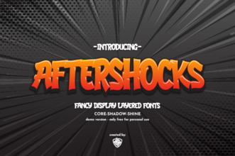 Шрифт Aftershocks. Гарнитура содержит 1 файл и поддерживает 40 языков. Можно использовать в не коммерческой деятельности. Разработка Aftershocks велась Taufik Tri Ariyanto.