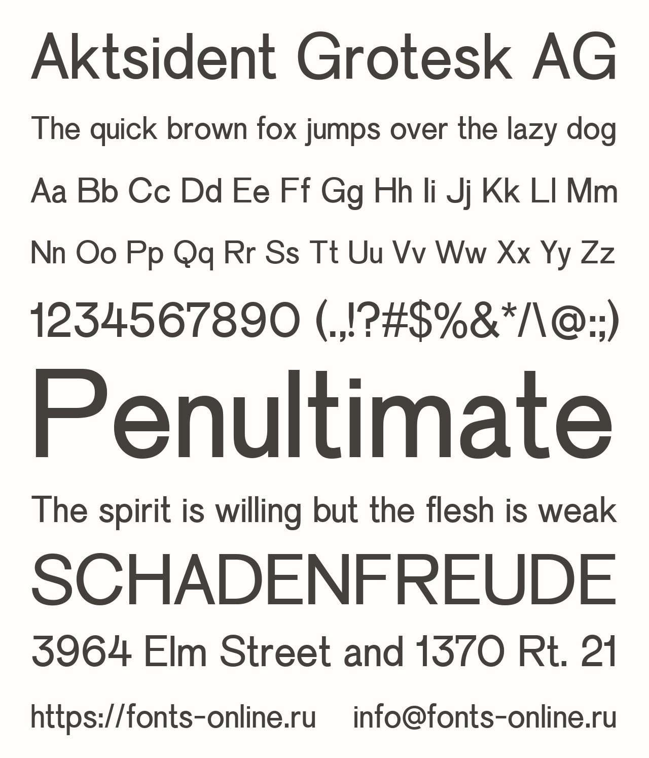 Шрифт Aktsident Grotesk AG. Гарнитура содержит 1 файл и поддерживает 71 язык. Можно использовать в не коммерческой деятельности. Разработка Aktsident Grotesk AG велась Alexandra Gophmann.