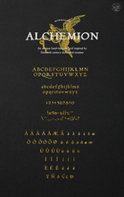 Alchemion is a hand-lettered serif font inspired by the beauty of antique alchemic treatises and books.