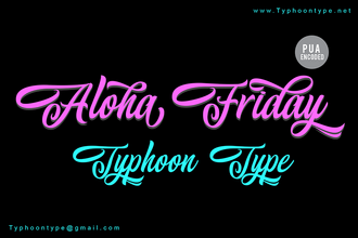 Шрифт Aloha Friday - Personal Use. Гарнитура содержит 1 файл и поддерживает 35 языков. Можно использовать в не коммерческой деятельности. Разработка Aloha Friday - Personal Use велась Typhoon Type� - Suthi Srisopha.