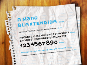 Шрифт AManoBlaxtendida. Гарнитура содержит 1 файл и поддерживает 37 языков. Можно использовать в не коммерческой деятельности. Разработка AManoBlaxtendida велась HaveFun� Fonts.