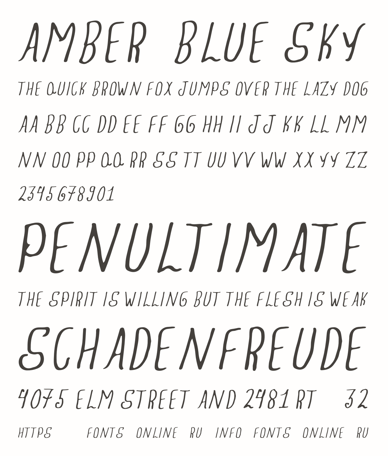 Amber Blue Sky PinterestFacebookTwitter Скачать Amber Blue Sky Тестировать Amber Blue Sky Сообщить об ошибке Шрифт Amber Blue Sky. Гарнитура содержит 2 файла и поддерживает 12 языков. Дополнительная информация Категории Каллиграфические шрифты Рукописные шрифты Языки Английский Зулу Индонезийский Корнский Оромо Руанда Рунди Северный ндебеле Сомалийский Суахили Узбекский Шона