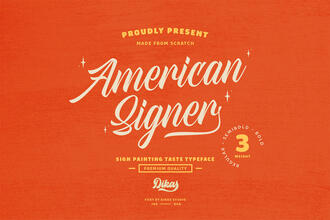 Шрифт American Signer Personal Use. Гарнитура содержит 1 файл и поддерживает 12 языков. Можно использовать в не коммерческой деятельности. Разработка American Signer Personal Use велась Dikas Studio.