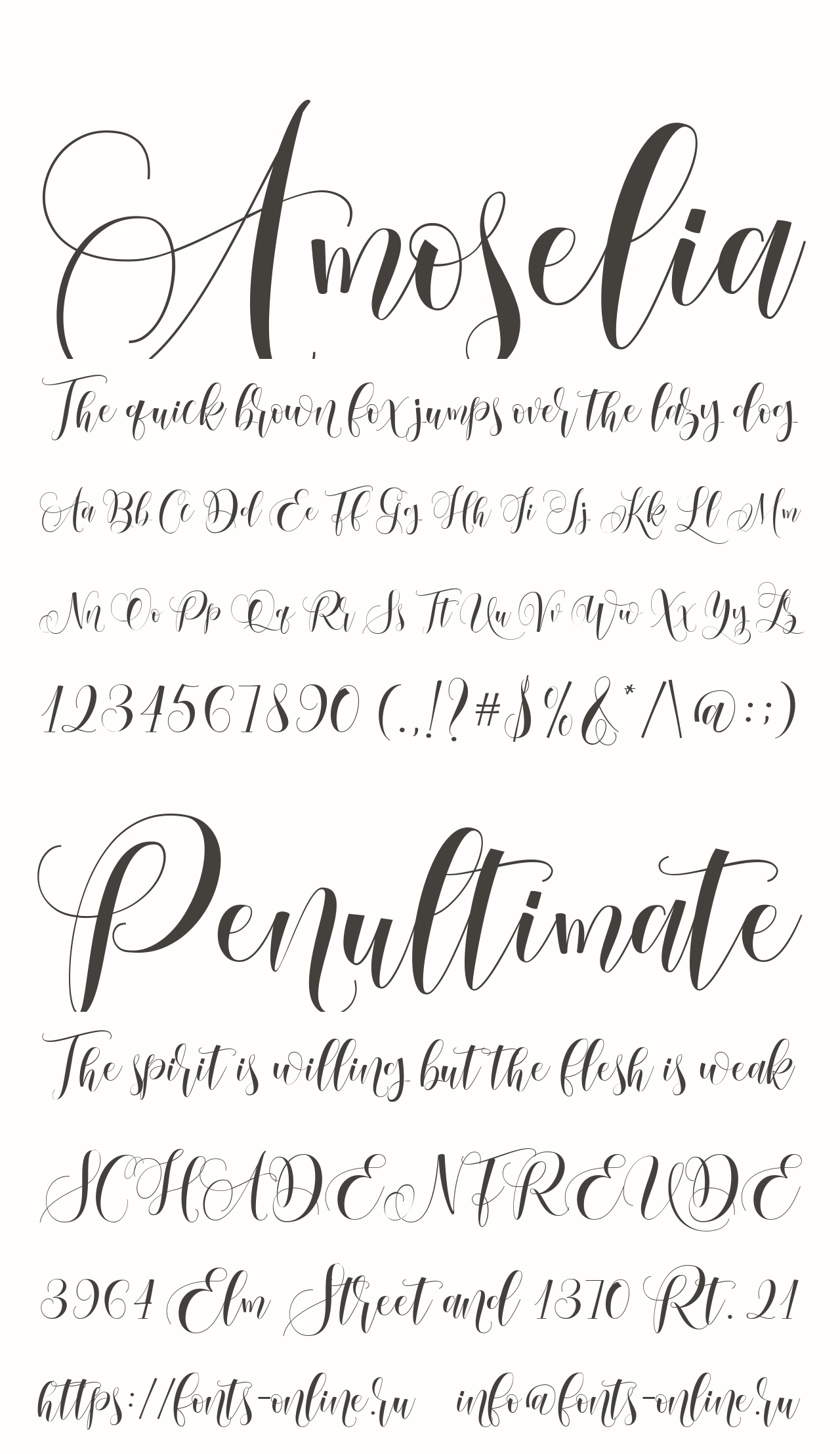 Шрифт Amoselia. Гарнитура содержит 1 файл и поддерживает 38 языков. Можно использовать в не коммерческой деятельности. Разработка Amoselia велась Gilar Studio.