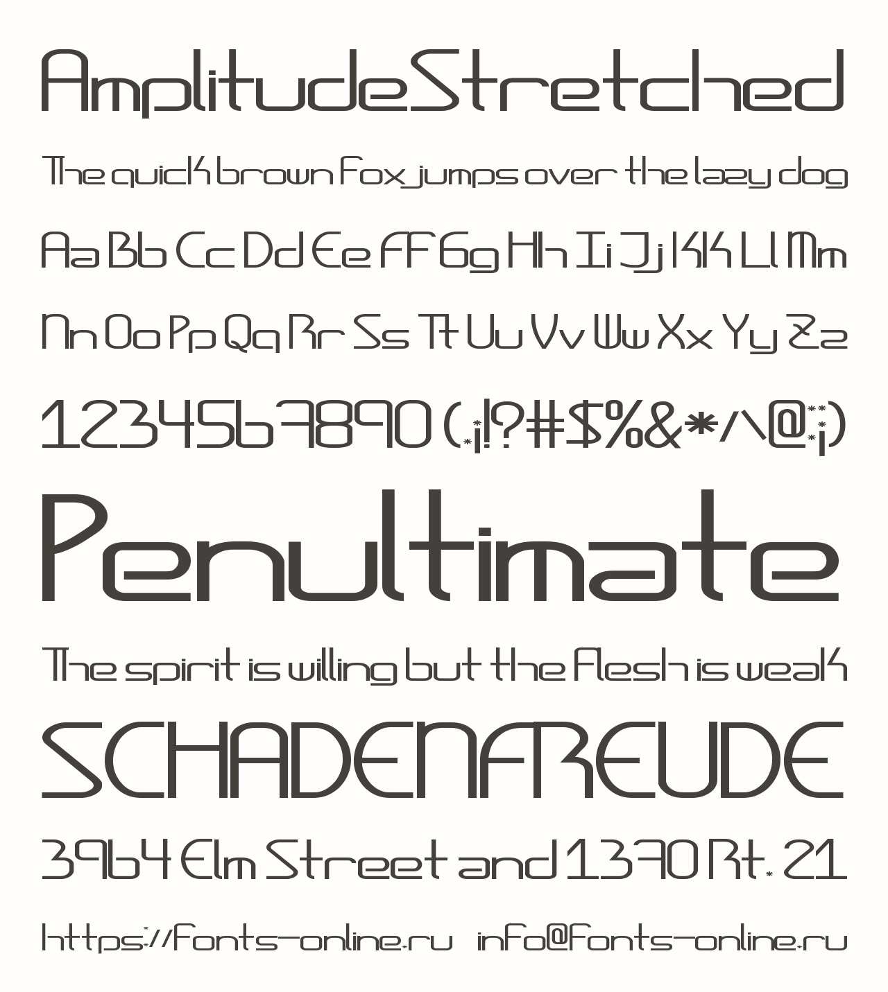 Шрифт AmplitudeStretched. Гарнитура содержит 11 файлов и поддерживает 30 языков. Разработка AmplitudeStretched велась Xerographer Fonts.