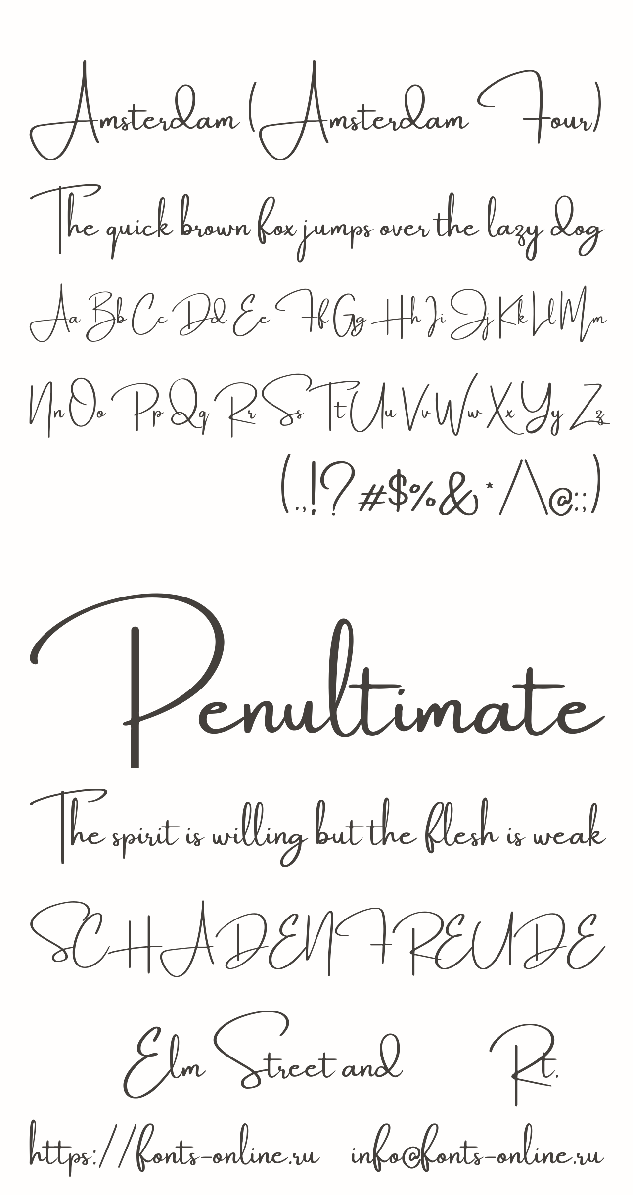 Amsterdam (Amsterdam Four) PinterestFacebookTwitter Скачать Amsterdam (Amsterdam Four) Тестировать Amsterdam (Amsterdam Four) Сообщить об ошибке Шрифт Amsterdam (Amsterdam Four). Гарнитура содержит 2 файла и поддерживает 38 языков. Изображения Copyright Amsterdam © Lettersiro 2017. All Rights Reserved Дополнительная информация Категории Рукописные шрифты Каллиграфические шрифты Скетч шрифты Школьные шрифты Шрифты кисти Языки Албанский Английский Африкаанс Баскский Бретонский Букмол Галисийский Датский Зулу Индонезийский Ирландский Исландский Испанский Итальянский Каталанский Кечуанский Корнский Люксембургский Малагасийский Мэнский Немецкий Нидерландский Новонорвежский Оромо Португальский Романшский Руанда Рунди Санго Северный ндебеле Сомалийский Суахили Узбекский Фарерский Французский Шведский Шона Шотландский