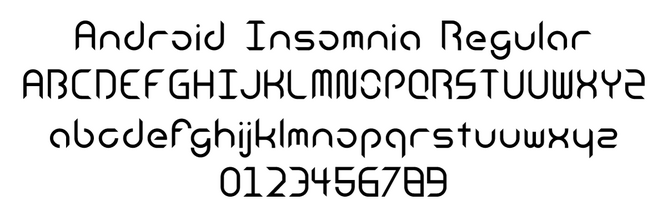 Шрифт Android Insomnia_. Гарнитура содержит 1 файл и поддерживает 12 языков. Разработка Android Insomnia_ велась Michael Moss.