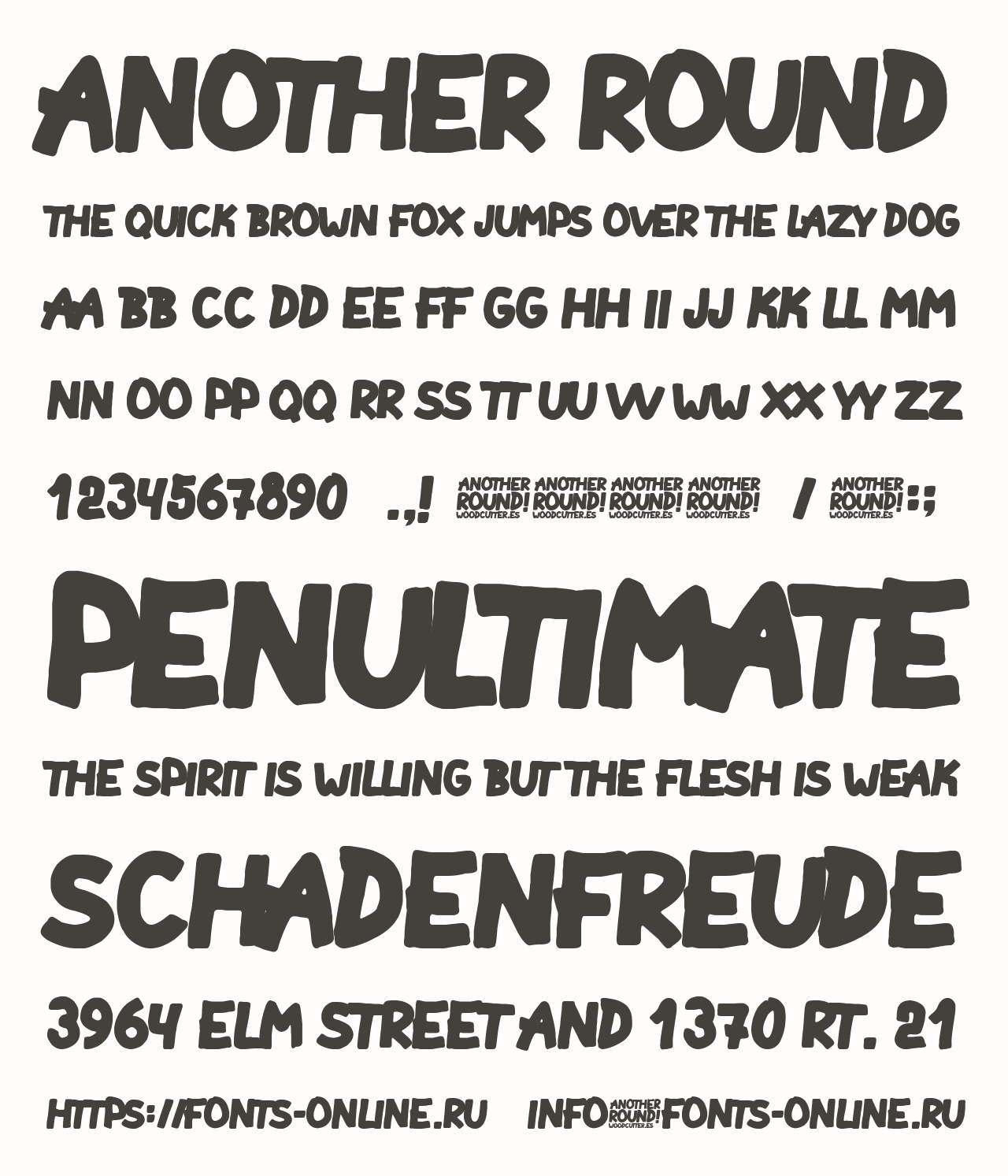 Шрифт Another Round. Гарнитура содержит 1 файл и поддерживает 37 языков. Можно использовать в не коммерческой деятельности. Разработка Another Round велась Woodcutter.