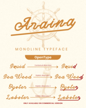 Шрифт Araina. Гарнитура содержит 1 файл и поддерживает 12 языков. Можно использовать в не коммерческой деятельности. Разработка Araina велась Letterseal Studio.
