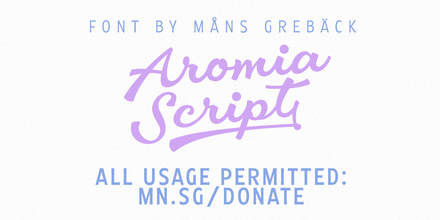 Шрифт Aromia Script. Гарнитура содержит 4 файла и поддерживает 61 язык. Разработка Aromia Script велась Mans Greback.