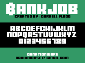 Шрифт Bankjob. Гарнитура содержит 1 файл и поддерживает 12 языков. Разработка Bankjob велась Darrell Flood.
