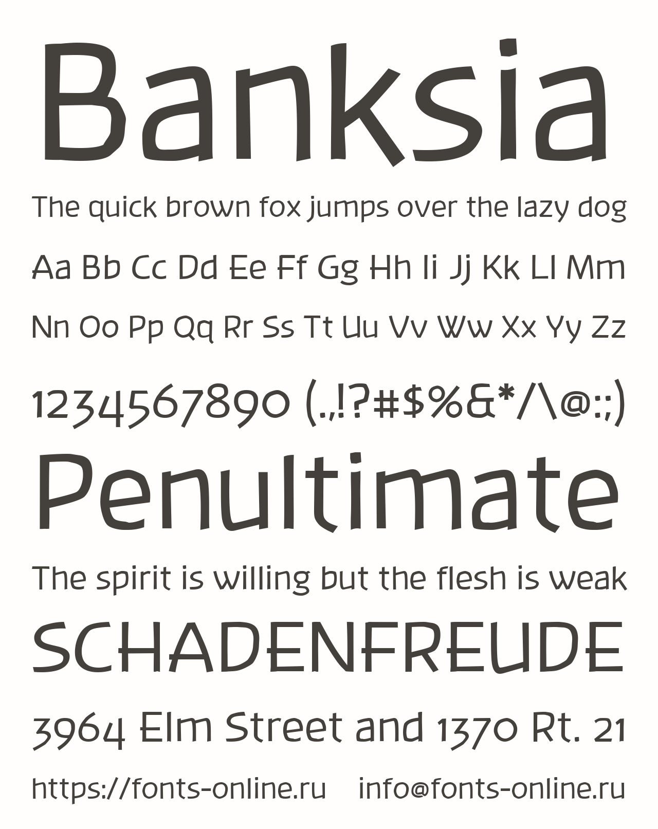 Шрифт Banksia. Гарнитура содержит 3 файла и поддерживает 40 языков. Можно использовать в коммерческой и не коммерческой деятельности.
