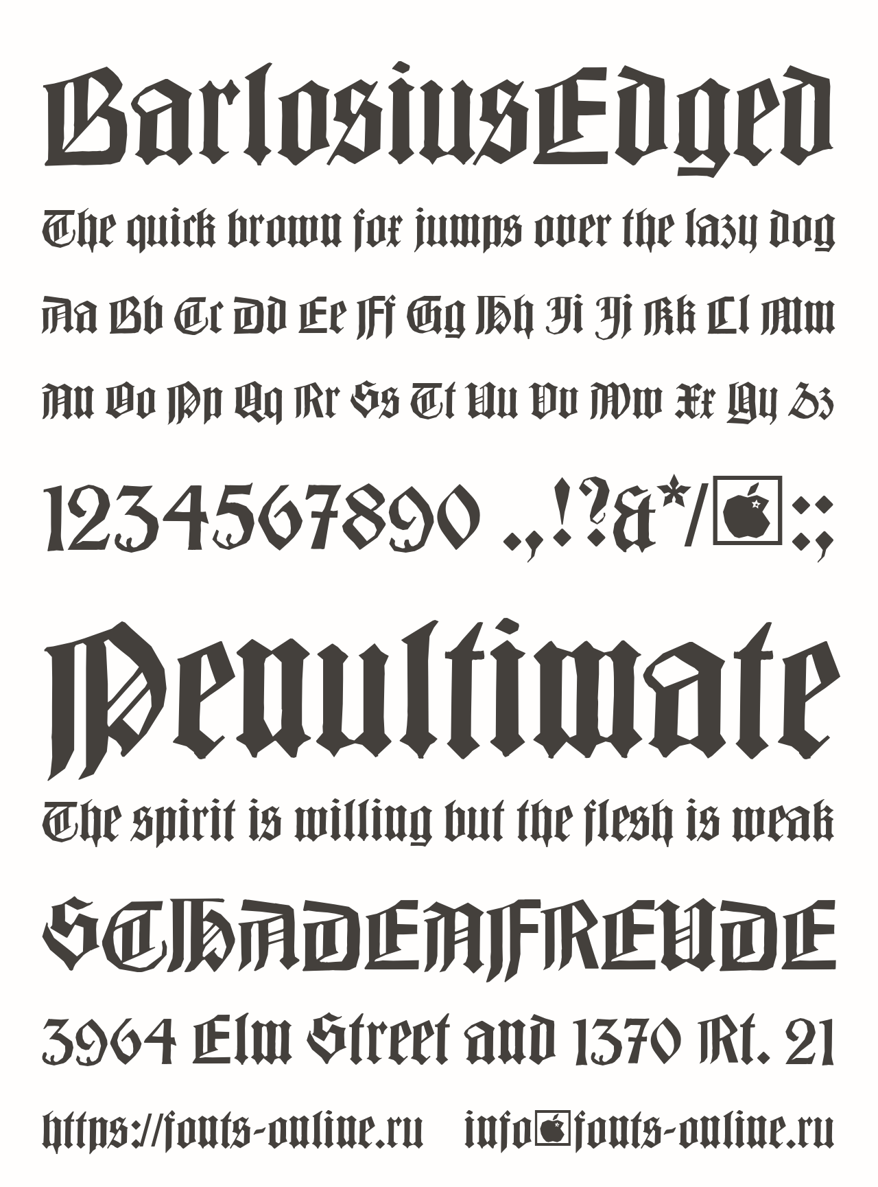 Шрифт BarlosiusEdged. Гарнитура содержит 1 файл и поддерживает 36 языков. Можно использовать в не коммерческой деятельности.