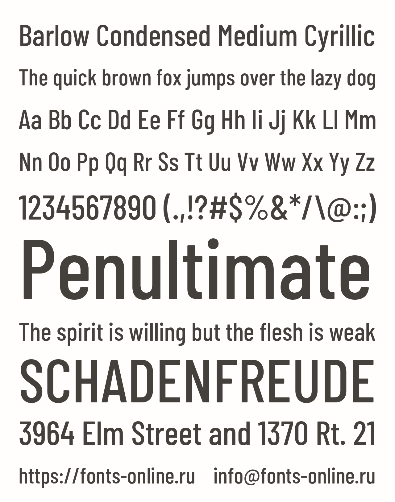 Шрифт Barlow Condensed Medium Cyrillic. Гарнитура содержит 1 файл и поддерживает 68 языков. Лицензия SIL OFL 1.1. Можно использовать в коммерческой и не коммерческой деятельности. Разработка Barlow Condensed Medium Cyrillic велась Jeremy Tribby.
