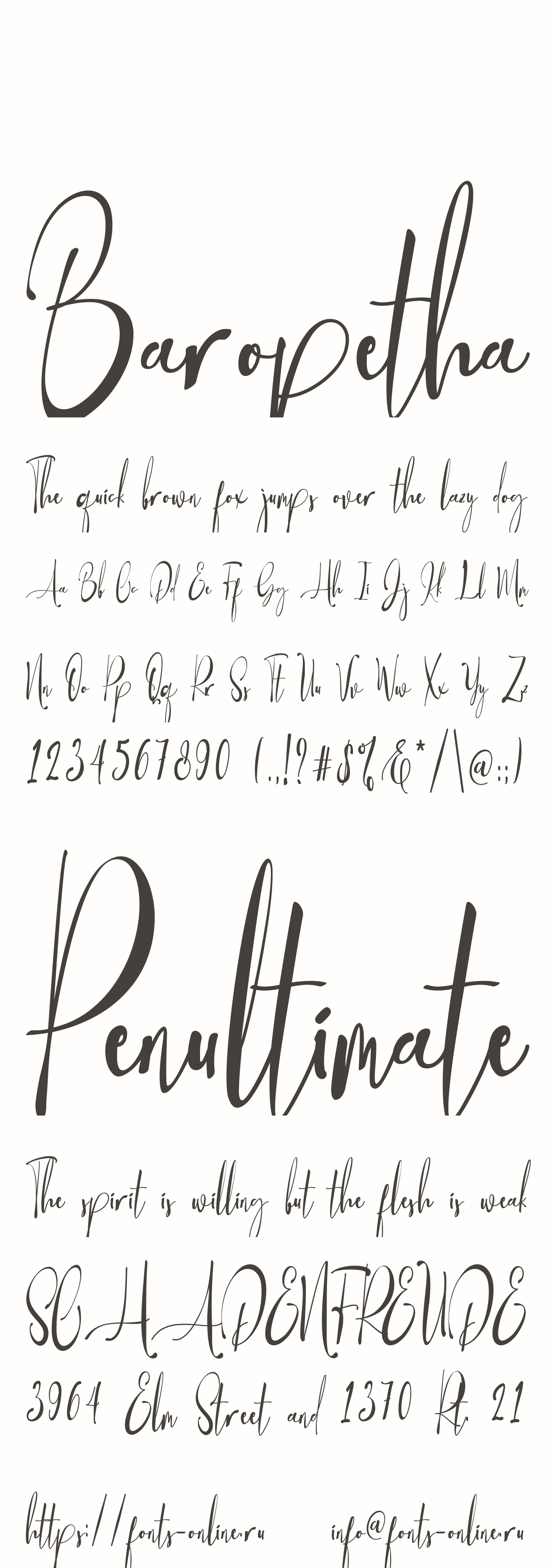 Шрифт Baropetha. Гарнитура содержит 1 файл и поддерживает 38 языков. Разработка Baropetha велась aldedesign.
