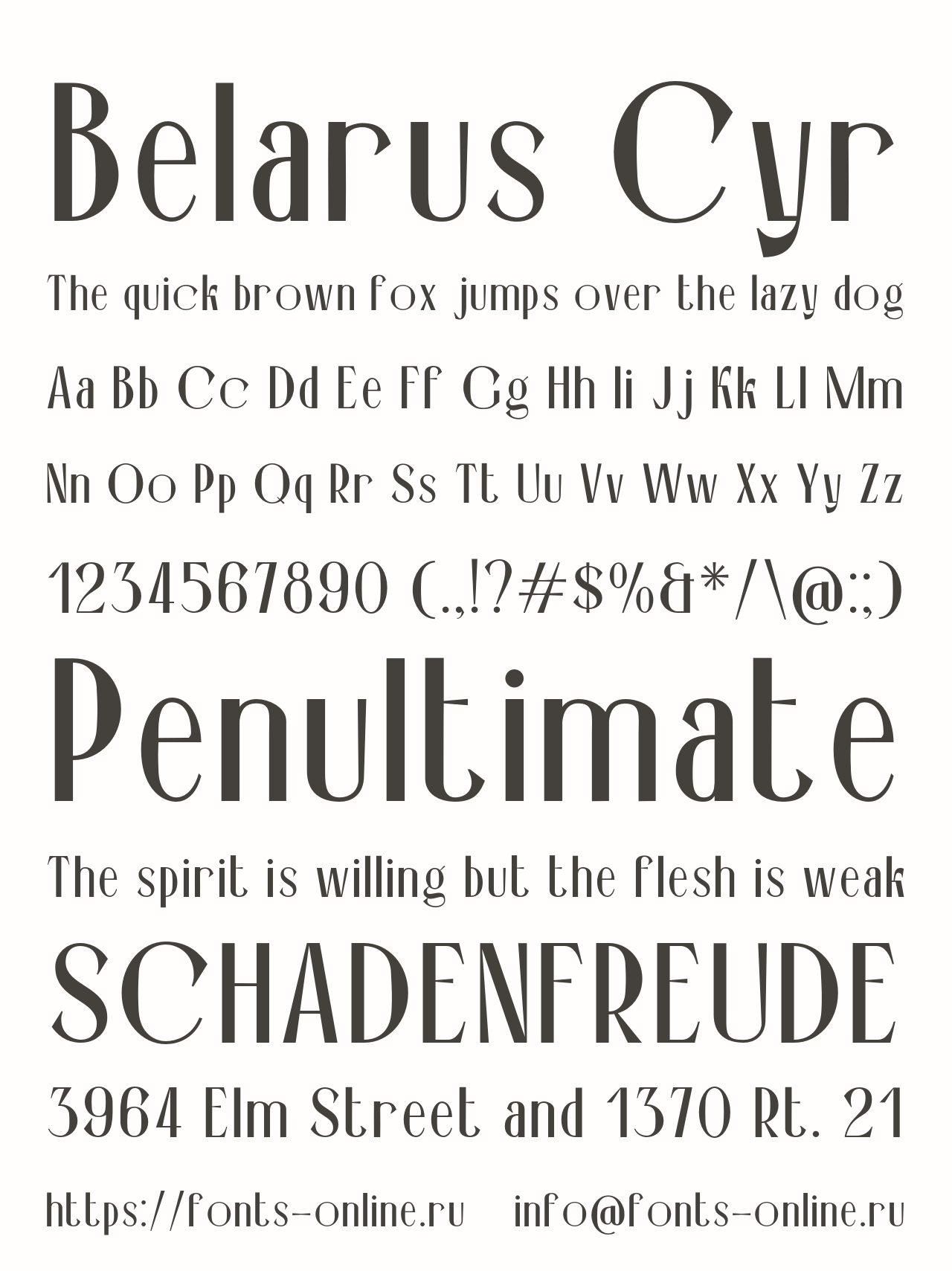 Belarus Cyr PinterestFacebookTwitter Скачать Belarus Cyr Тестировать Belarus Cyr Сообщить об ошибке Шрифт Belarus Cyr. Гарнитура содержит 3 файла и поддерживает 16 языков. Изображения Дополнительная информация Категории Ретро шрифты Исторические шрифты Шрифты для заголовков Шрифты для текста Языки Английский Белорусский Болгарский Зулу Индонезийский Корнский Оромо Руанда Рунди Русский Северный ндебеле Сомалийский Суахили Узбекский Чеченский Шона