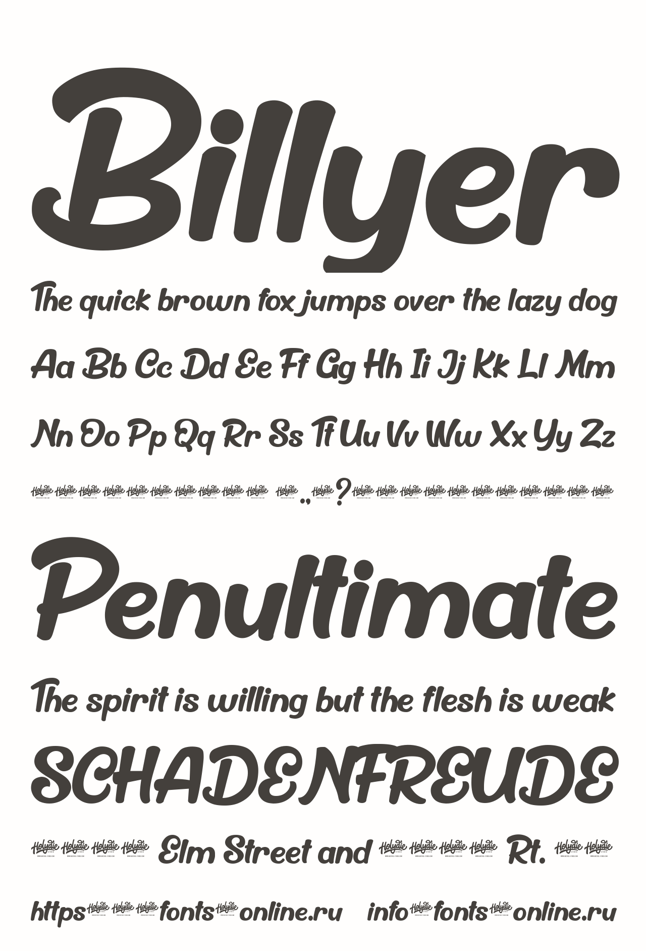 Шрифт Billyer. Гарнитура содержит 1 файл и поддерживает 12 языков. Можно использовать в не коммерческой деятельности. Разработка Billyer велась Holydie Studio.