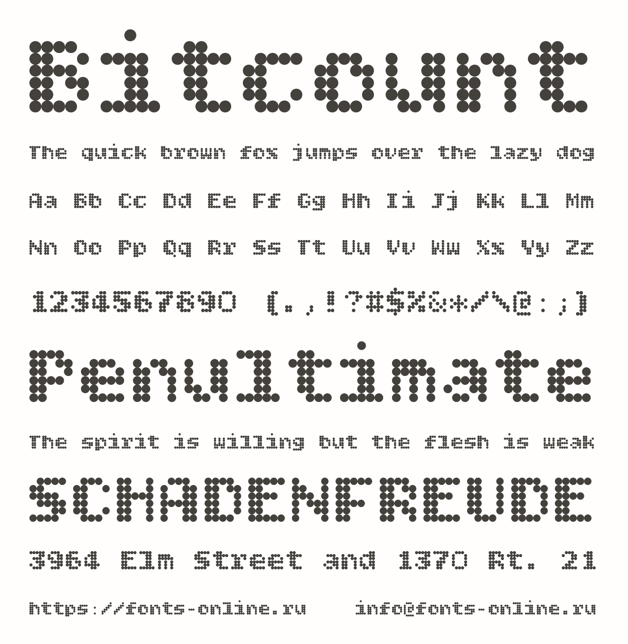 Bitcount вариативный шрифт. Гарнитура содержит 1 файл и поддерживает 58 языков. Лицензия SIL OFL 1.1. Можно использовать в коммерческой и не коммерческой деятельности.
