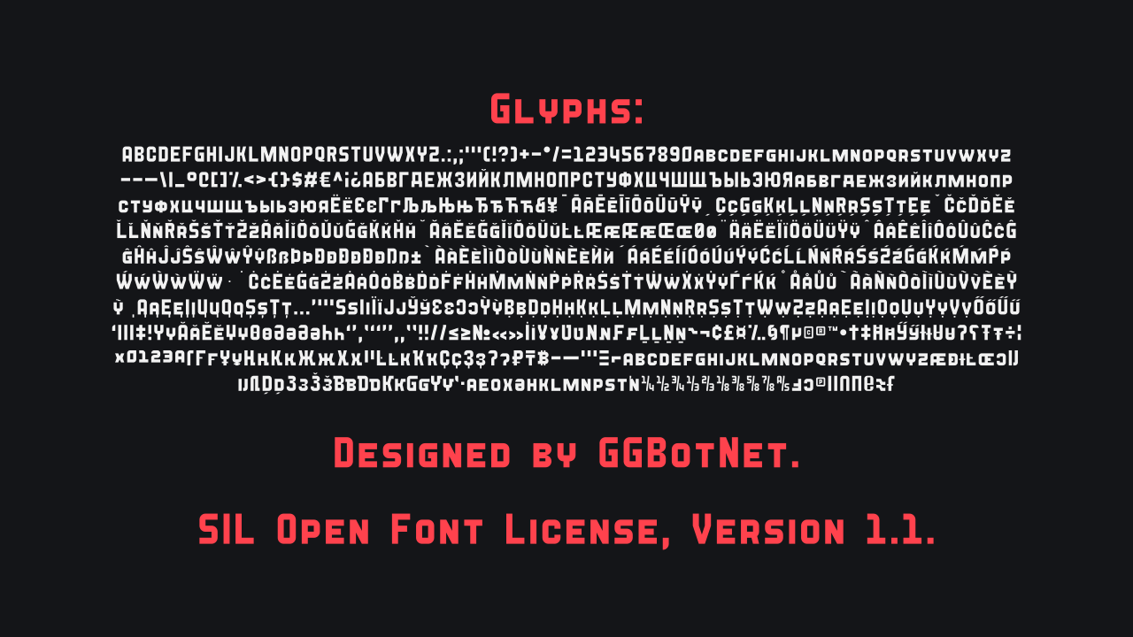 SIL Open Font License 1.1 — свободная и открытая лицензия, разработанная SIL International, используется для многих свободных шрифтов у которых открыт исходный код. Все файлы, производные от файлов OFL, должны оставаться лицензированными в соответствии с OFL.
