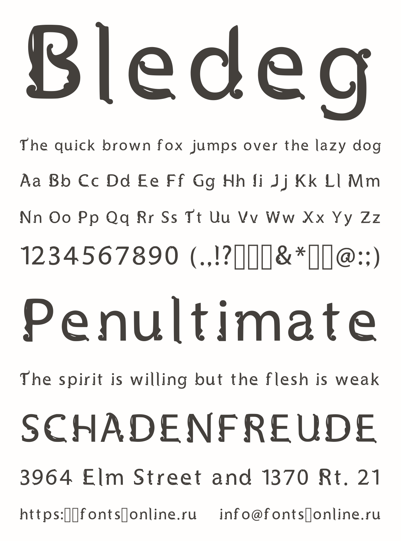Шрифт Bledeg. Гарнитура содержит 2 файла и поддерживает 12 языков. Разработка Bledeg велась Jihan K.