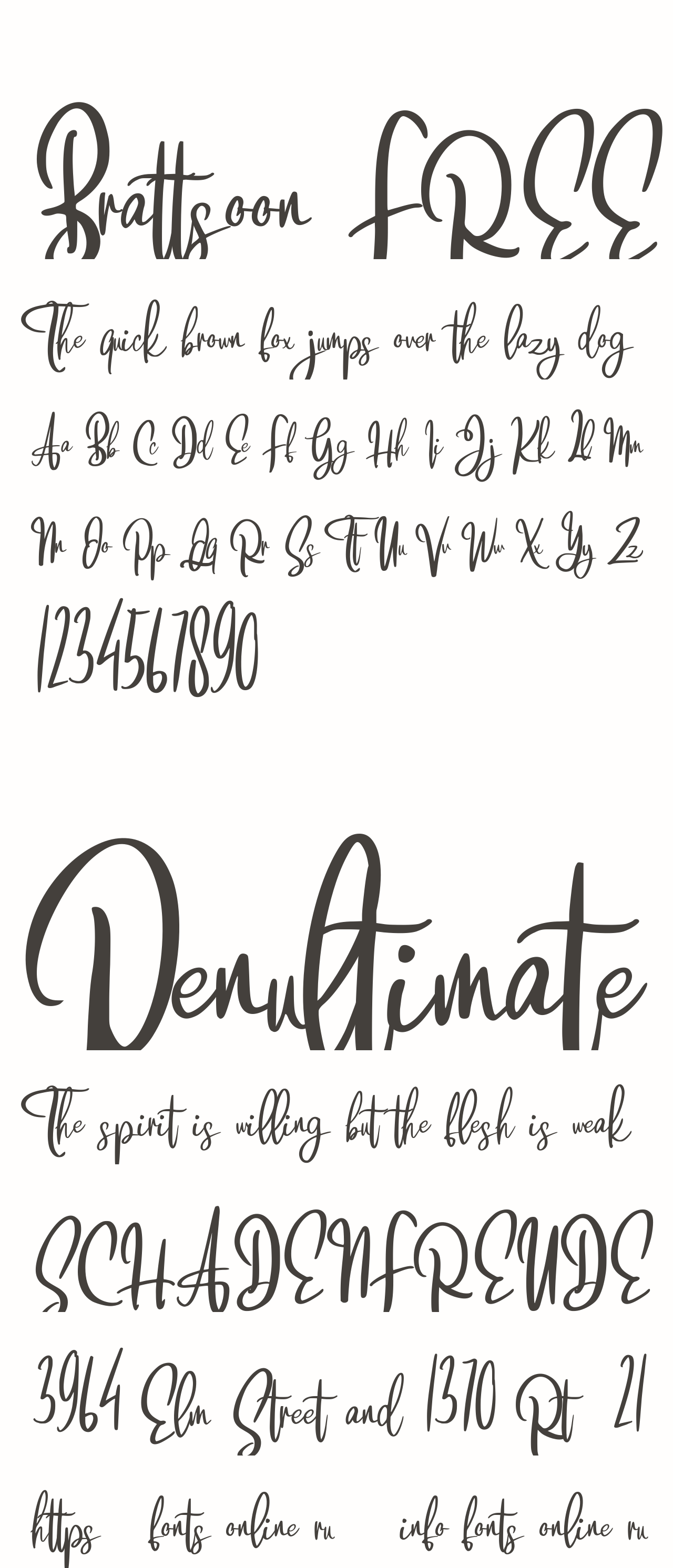 Шрифт Brattsoon FREE. Гарнитура содержит 2 файла и поддерживает 12 языков. Можно использовать в не коммерческой деятельности. Разработка Brattsoon FREE велась Vunira Design.
