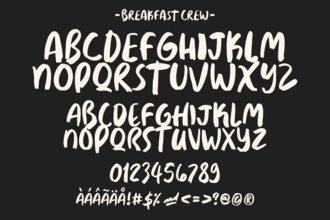 Шрифт Breakfast Crew. Гарнитура содержит 1 файл и поддерживает 37 языков. Можно использовать в не коммерческой деятельности. Разработка Breakfast Crew велась The Branded Quotes.