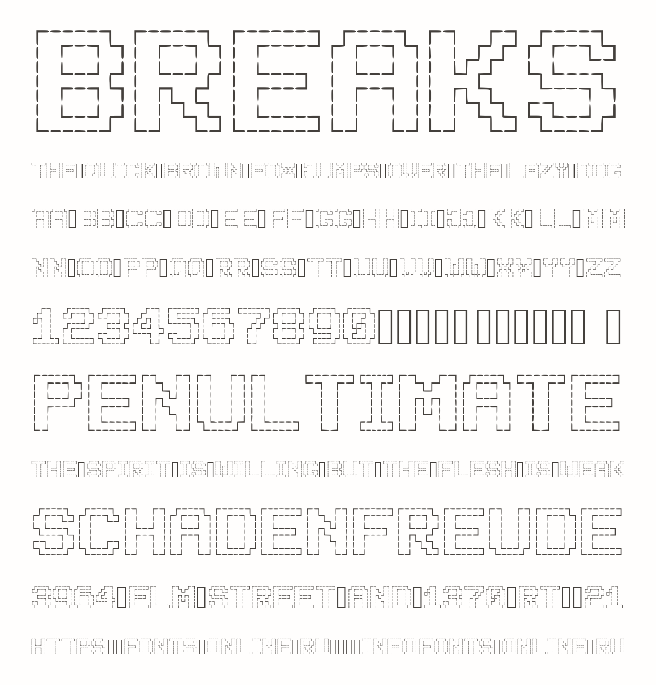 Шрифт BREAKS. Гарнитура содержит 1 файл и поддерживает 12 языков. Можно использовать в не коммерческой деятельности.