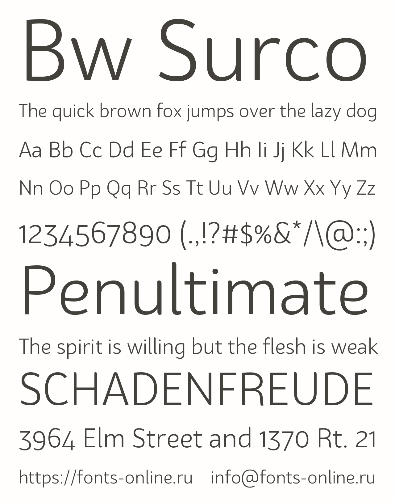 Bw Surco PinterestFacebookTwitter Скачать Bw Surco Тестировать Bw Surco Сообщить об ошибке Шрифт Bw Surco. Гарнитура содержит 12 файлов и поддерживает 63 языка. Изображения Copyright Copyright © 2016 by Alberto Romanos. All rights reserved. Дополнительная информация Категории Шрифты без засечек Шрифты для заголовков Шрифты для текста Языки Албанский Английский Африкаанс Баскский Белорусский Болгарский Боснийский Бретонский Букмол Валлийский Венгерский Волапюк Галисийский Датский Западнофризский Зулу Индонезийский Ирландский Исландский Испанский Итальянский Каталанский Кечуанский Корнский Латышский Литовский Луганда Люксембургский Македонский Малагасийский Мальтийский Мэнский Немецкий Нидерландский Новонорвежский Оромо Польский Португальский Романшский Руанда Румынский Рунди Русский Санго Северносаамский Северный ндебеле Сербский Словацкий Словенский Сомалийский Суахили Турецкий Узбекский Фарерский Финский Французский Хорватский Чеченский Чешский Шведский Шона Шотландский Эстонский