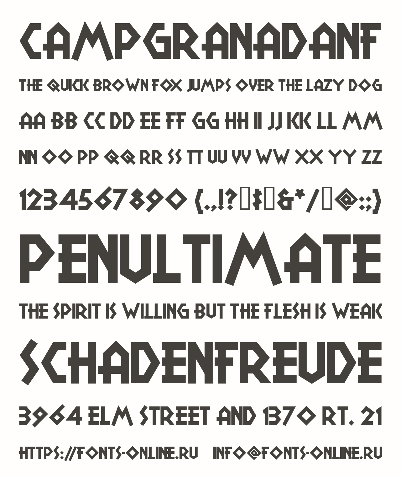 Шрифт CampGranadaNF. Гарнитура содержит 2 файла и поддерживает 39 языков. Можно использовать в коммерческой и не коммерческой деятельности.