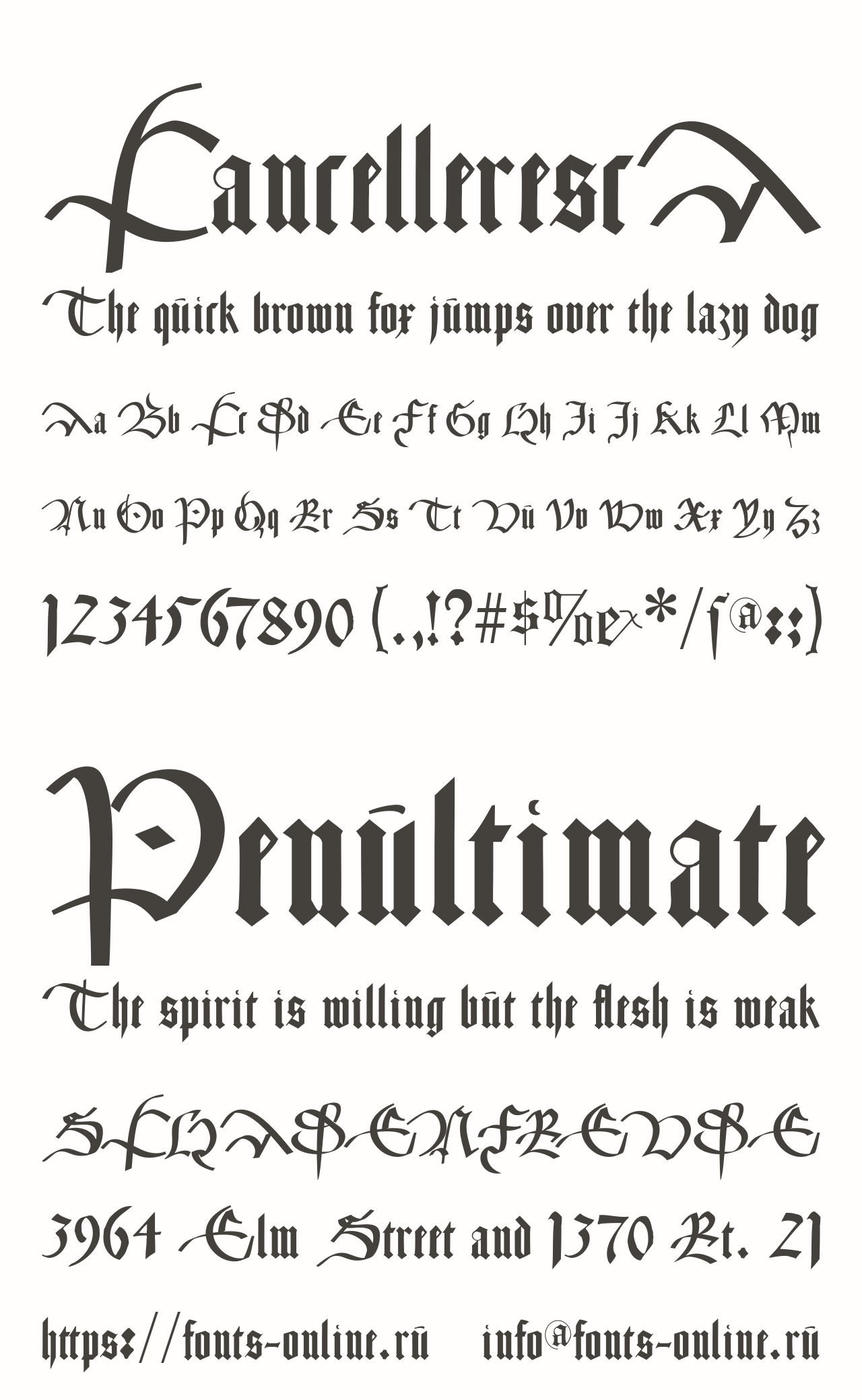 Шрифт CancellerescA. Гарнитура содержит 1 файл и поддерживает 25 языков. Можно использовать в не коммерческой деятельности.
