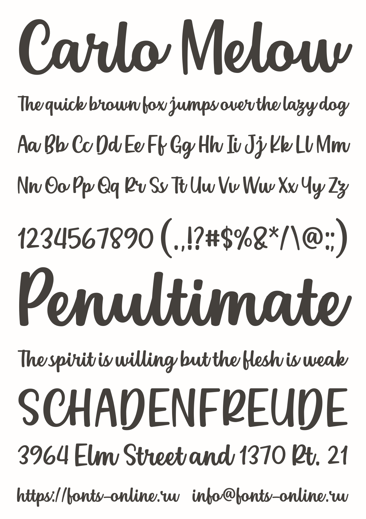 Carlo Melow PinterestFacebookTwitter Скачать Carlo Melow Тестировать Carlo Melow Сообщить об ошибке Шрифт Carlo Melow. Гарнитура содержит 1 файл и поддерживает 39 языков. Copyright Carlo Melow © 7NTypes. 2019. All Rights Reserved Дополнительная информация Языки Албанский Английский Африкаанс Баскский Белорусский Болгарский Бретонский Букмол Галисийский Датский Зулу Индонезийский Ирландский Испанский Итальянский Каталанский Кечуанский Корнский Люксембургский Малагасийский Мэнский Немецкий Нидерландский Новонорвежский Оромо Португальский Романшский Руанда Рунди Русский Санго Северный ндебеле Сомалийский Суахили Узбекский Чеченский Шведский Шона Шотландский