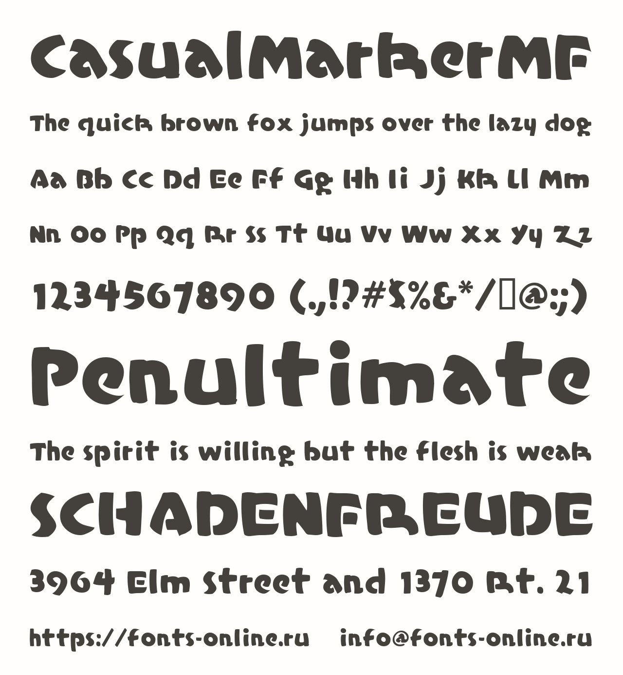 Шрифт CasualMarkerMF. Гарнитура содержит 1 файл и поддерживает 12 языков. Можно использовать в коммерческой и не коммерческой деятельности.