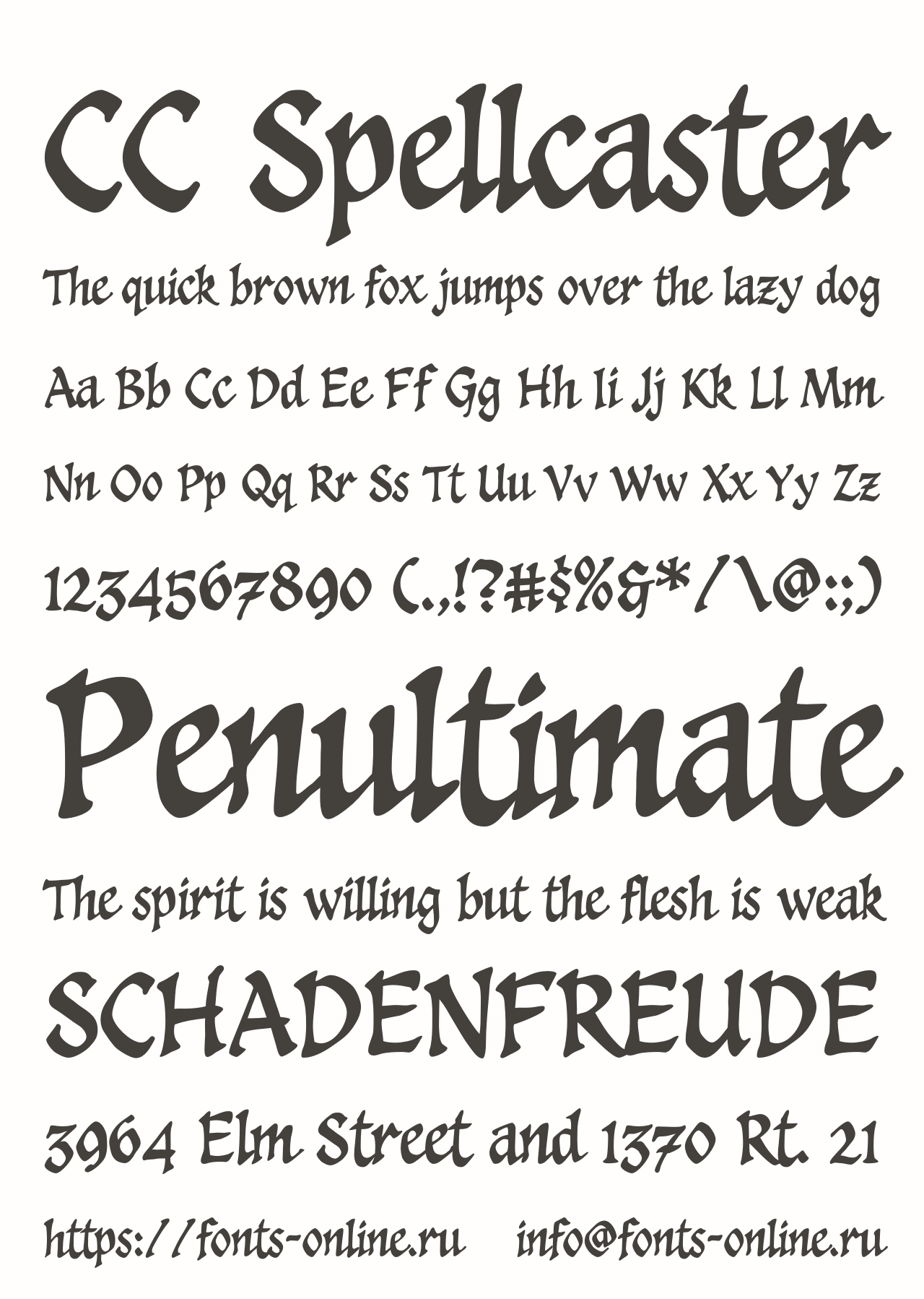 CC Spellcaster PinterestFacebookTwitter Скачать CC Spellcaster Тестировать CC Spellcaster Сообщить об ошибке Шрифт CC Spellcaster. Гарнитура содержит 4 файла и поддерживает 66 языков. Copyright Copyright (c) 2018 by Comicraft. All rights reserved. Дополнительная информация Категории Исторические шрифты Средневековые шрифты Рукописные шрифты Тематические шрифты Шрифты для заголовков Шрифты для текста Шрифты с засечками Языки Албанский Английский Африкаанс Баскский Белорусский Болгарский Боснийский Бретонский Букмол Валлийский Венгерский Волапюк Галисийский Гренландский Датский Западнофризский Зулу Индонезийский Ирландский Исландский Испанский Итальянский Каталанский Кечуанский Кикуйю Корнский Латышский Литовский Луганда Люксембургский Македонский Малагасийский Мальтийский Мэнский Немецкий Нидерландский Новонорвежский Оромо Польский Португальский Романшский Руанда Румынский Рунди Русский Санго Северносаамский Северный ндебеле Сербский Словацкий Словенский Сомалийский Суахили Турецкий Узбекский Фарерский Финский Французский Хорватский Чеченский Чешский Шведский Шона Шотландский Эсперанто Эстонский