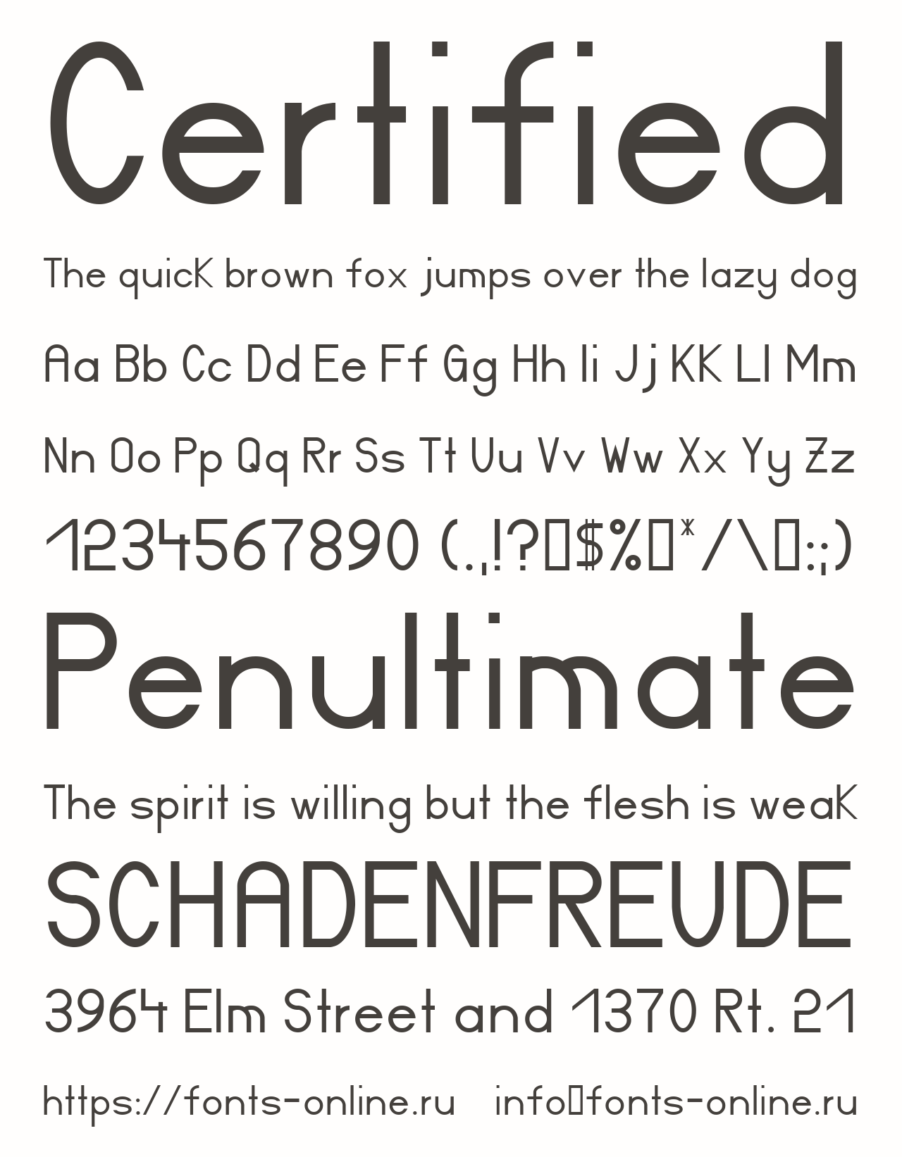 Шрифт Certified. Гарнитура содержит 2 файла и поддерживает 13 языков. Можно использовать в коммерческой и не коммерческой деятельности.