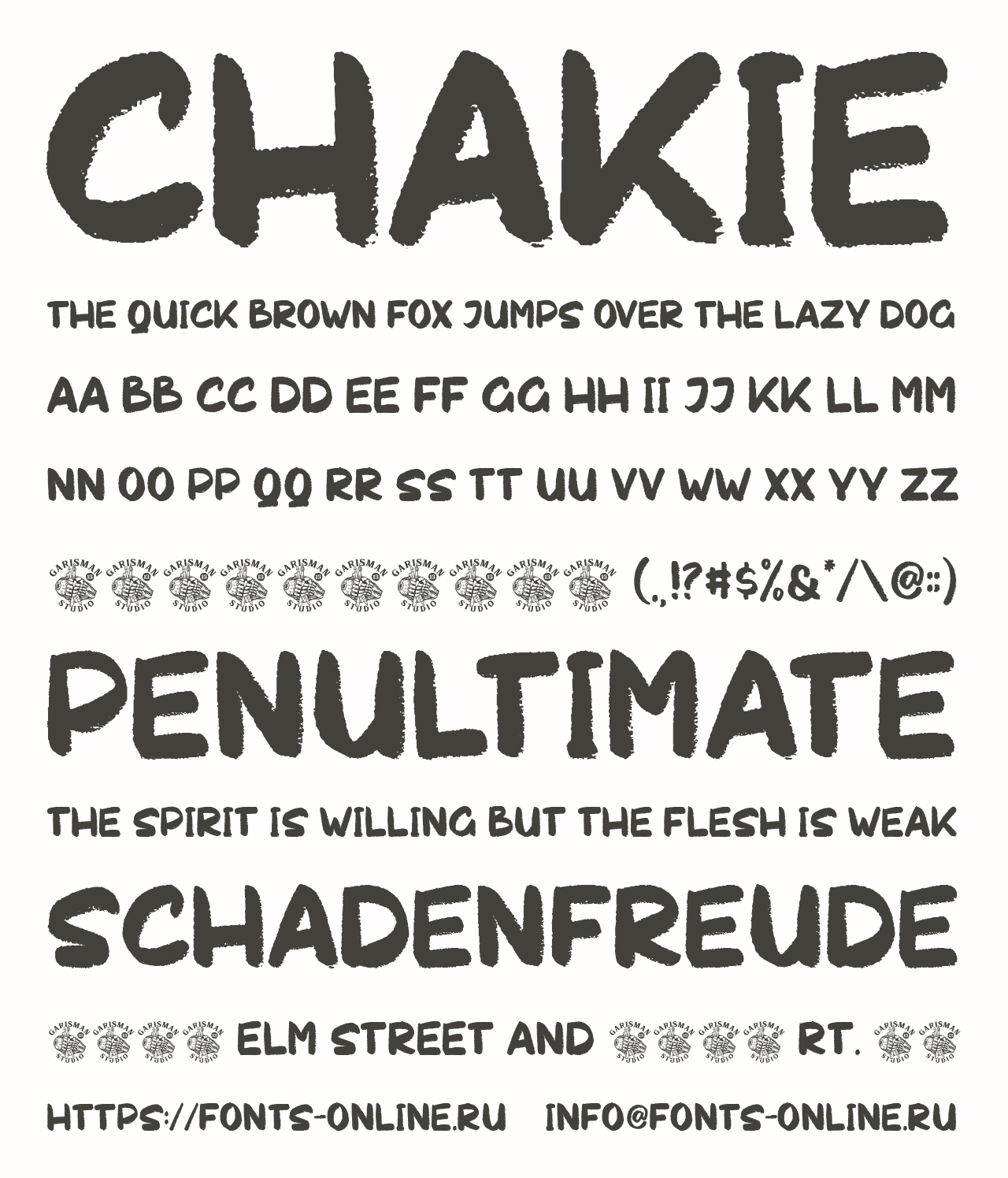 Шрифт Chakie. Гарнитура содержит 1 файл и поддерживает 12 языков. Можно использовать в не коммерческой деятельности. Разработка Chakie велась Garisman Studio.