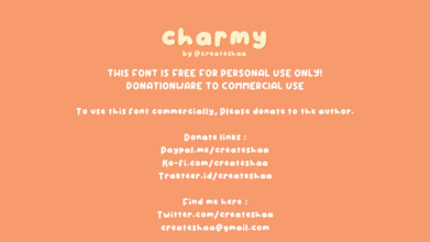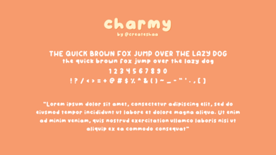 Шрифт Charmy. Гарнитура содержит 2 файла и поддерживает 12 языков. Разработка Charmy велась createshaa.