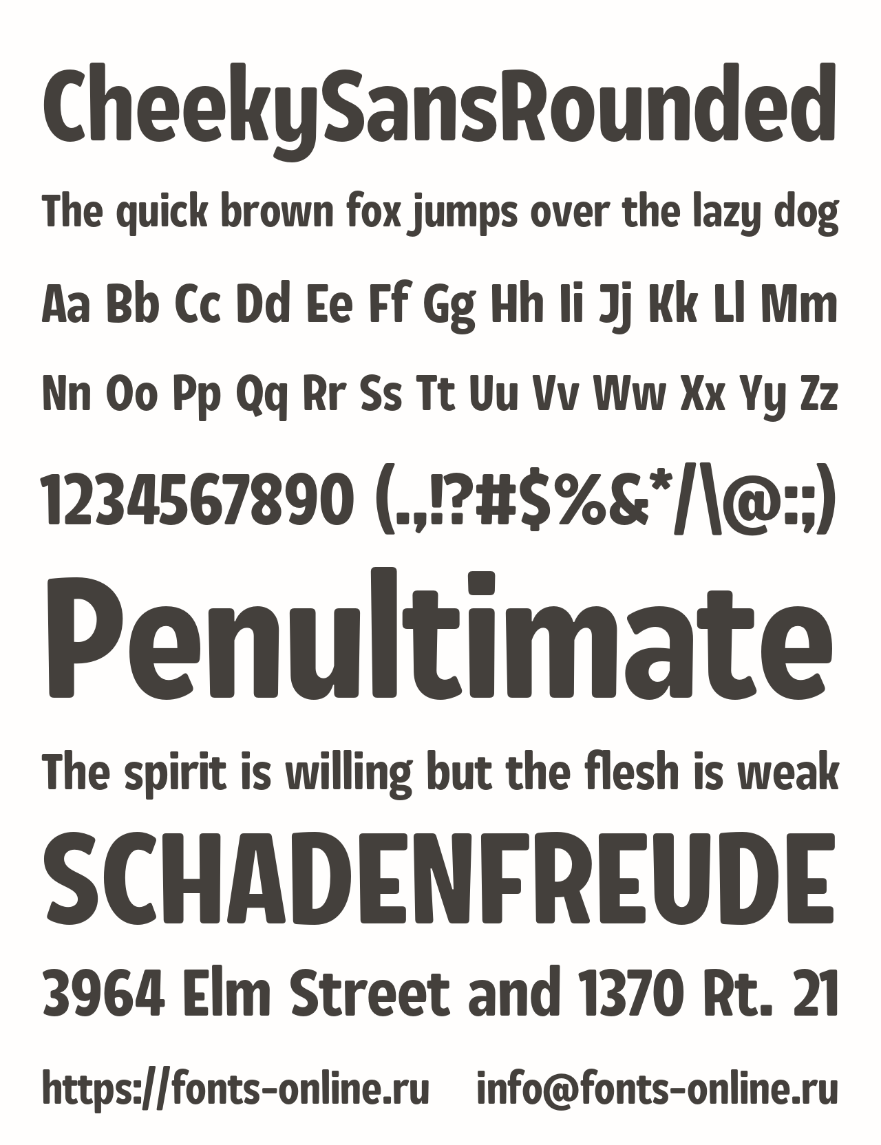CheekySansRounded PinterestFacebookTwitter Скачать CheekySansRounded Тестировать CheekySansRounded Сообщить об ошибке Шрифт CheekySansRounded. Гарнитура содержит 1 файл и поддерживает 59 языков. Copyright Copyright © 2021 by Anze Versnik for Outfit7 Ltd.. All rights reserved. Дополнительная информация Категории Шрифты без засечек Шрифты для заголовков Шрифты для текста Языки Албанский Английский Африкаанс Баскский Бретонский Букмол Валлийский Венгерский Волапюк Галисийский Гренландский Датский Западнофризский Зулу Индонезийский Ирландский Исландский Испанский Итальянский Каталанский Кечуанский Кикуйю Корнский Латышский Литовский Луганда Люксембургский Малагасийский Мальтийский Мэнский Немецкий Нидерландский Новонорвежский Оромо Польский Португальский Романшский Руанда Румынский Рунди Санго Северносаамский Северный ндебеле Словацкий Словенский Сомалийский Суахили Турецкий Узбекский Фарерский Финский Французский Хорватский Чешский Шведский Шона Шотландский Эсперанто Эстонский