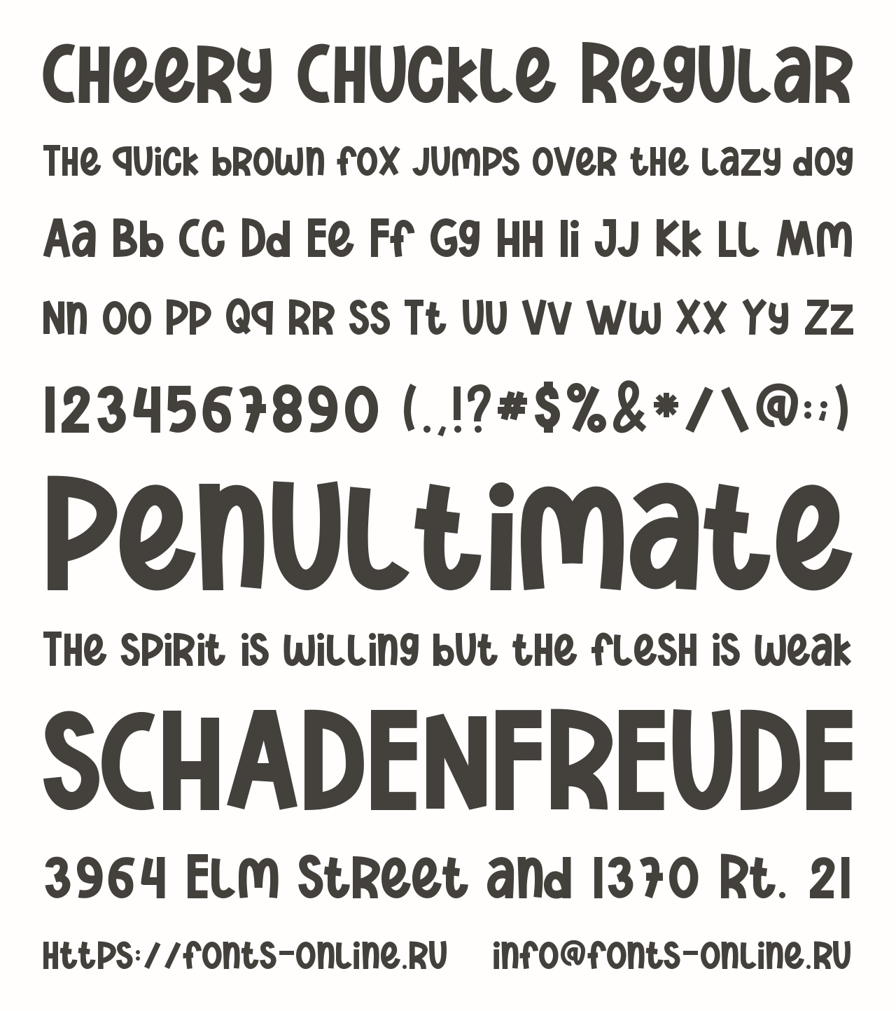 Cheery Chuckle Regular PinterestFacebookTwitter Скачать Cheery Chuckle Regular Тестировать Cheery Chuckle Regular Сообщить об ошибке Шрифт Cheery Chuckle Regular. Гарнитура содержит 1 файл и поддерживает 30 языков. Изображения Copyright Ari Wibowo © 2023 Дополнительная информация Категории Комические шрифты Тематические шрифты Шрифты для комиксов Языки Албанский Английский Африкаанс Баскский Бретонский Галисийский Зулу Индонезийский Ирландский Испанский Итальянский Кечуанский Корнский Люксембургский Малагасийский Мэнский Нидерландский Оромо Португальский Романшский Руанда Рунди Санго Северный ндебеле Сомалийский Суахили Узбекский Шведский Шона Шотландский
