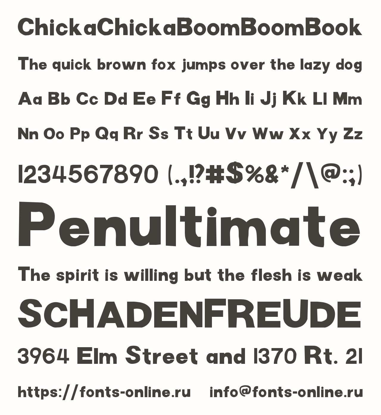 ChickaChickaBoomBoomBook PinterestFacebookTwitter Скачать ChickaChickaBoomBoomBook Тестировать ChickaChickaBoomBoomBook Сообщить об ошибке Шрифт ChickaChickaBoomBoomBook. Гарнитура содержит 1 файл и поддерживает 20 языков. Copyright fangamer12 Дополнительная информация Категории Шрифты без засечек Шрифты для заголовков Шрифты для текста Языки Английский Галисийский Зулу Индонезийский Ирландский Испанский Итальянский Кечуанский Корнский Немецкий Оромо Романшский Руанда Рунди Северный ндебеле Сомалийский Суахили Узбекский Шона Шотландский