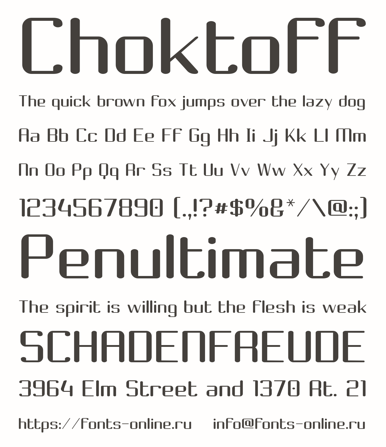 Шрифт Choktoff. Гарнитура содержит 2 файла и поддерживает 39 языков. Можно использовать в коммерческой и не коммерческой деятельности.