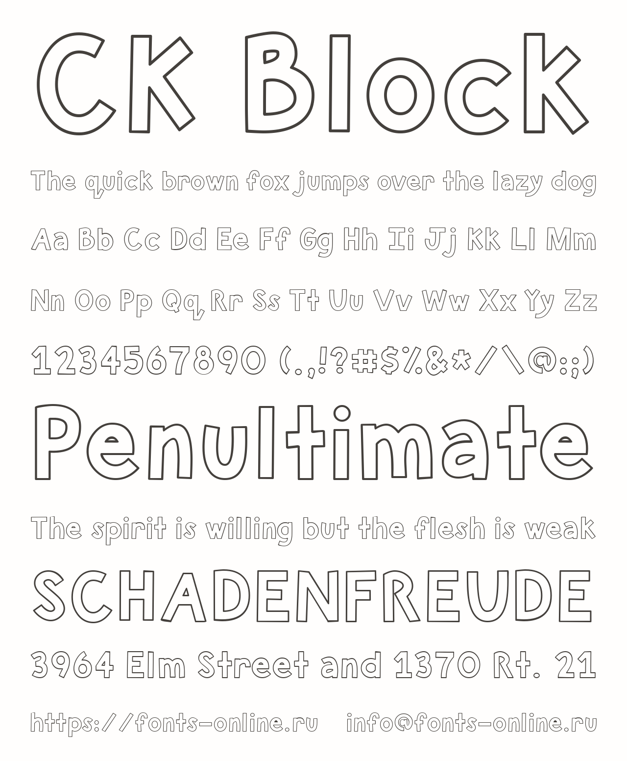 CK Block PinterestFacebookTwitter Скачать CK Block Тестировать CK Block Сообщить об ошибке Шрифт CK Block. Гарнитура содержит 1 файл и поддерживает 33 языка. Copyright Copyright 2000 Porch Swing Publishing, Inc. All rights reserved. Дополнительная информация Категории Декоративные шрифты Комические шрифты Тематические шрифты Контурные шрифты Шрифты для заголовков Языки Албанский Английский Африкаанс Баскский Бретонский Волапюк Галисийский Зулу Индонезийский Ирландский Испанский Итальянский Каталанский Кечуанский Корнский Люксембургский Малагасийский Мэнский Немецкий Нидерландский Оромо Португальский Романшский Руанда Рунди Санго Северный ндебеле Сомалийский Суахили Узбекский Шведский Шона Шотландский