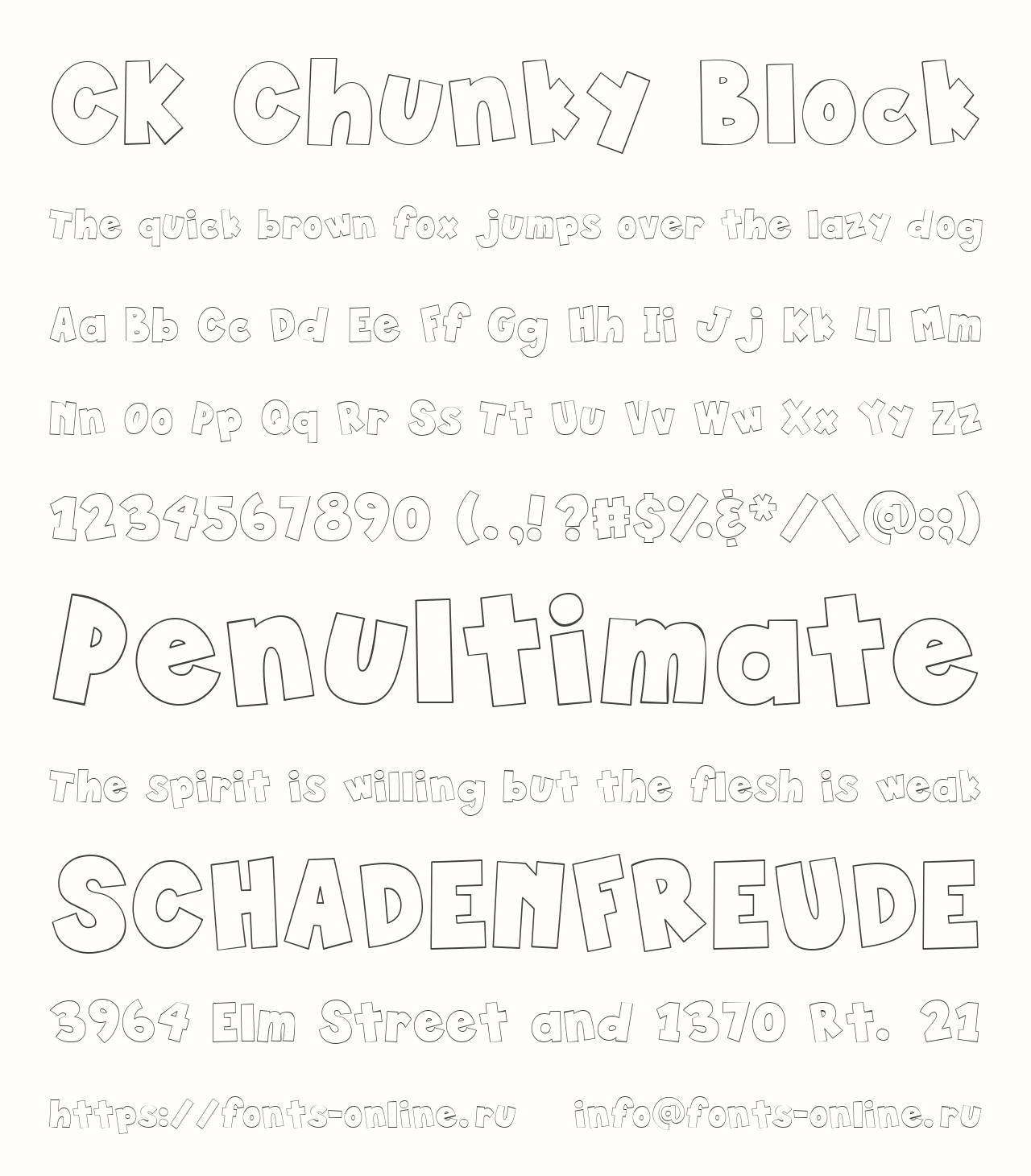 CK Chunky Block PinterestFacebookTwitter Скачать CK Chunky Block Тестировать CK Chunky Block Сообщить об ошибке Шрифт CK Chunky Block. Гарнитура содержит 1 файл и поддерживает 33 языка. Copyright Copyright 2000 Porch Swing Publishing. All rights reserved. Дополнительная информация Категории Декоративные шрифты Комические шрифты Тематические шрифты Контурные шрифты Шрифты для заголовков Языки Албанский Английский Африкаанс Баскский Бретонский Волапюк Галисийский Зулу Индонезийский Ирландский Испанский Итальянский Каталанский Кечуанский Корнский Люксембургский Малагасийский Мэнский Немецкий Нидерландский Оромо Португальский Романшский Руанда Рунди Санго Северный ндебеле Сомалийский Суахили Узбекский Шведский Шона Шотландский