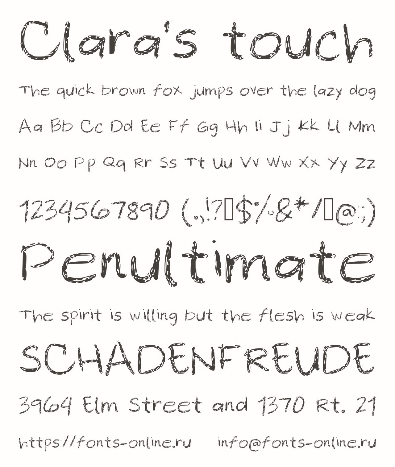 Шрифт Clara's touch. Гарнитура содержит 1 файл и поддерживает 12 языков. Можно использовать в не коммерческой деятельности.